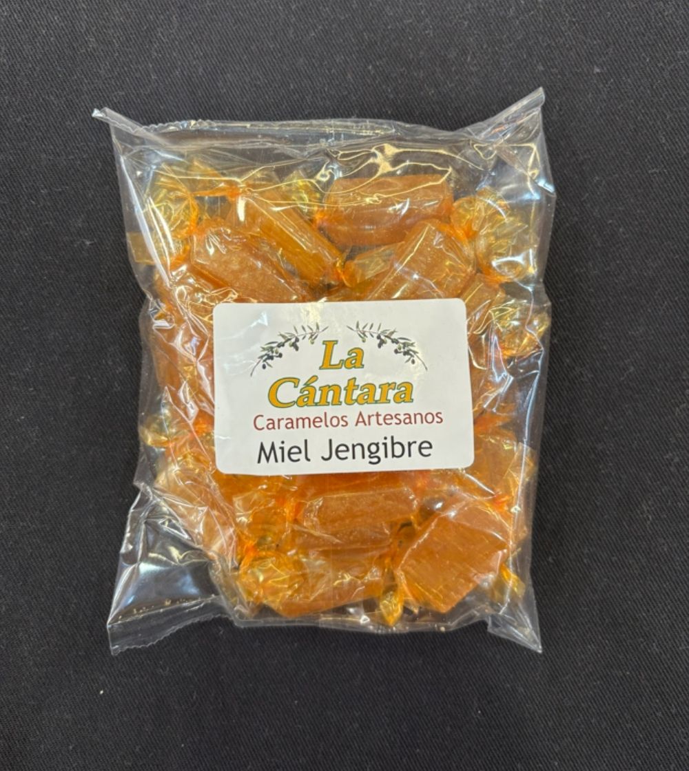 Estos caramelos unen la dulzura de la miel con el carácter cálido del jengibre, ofreciendo un sabor intenso y reconfortante, elaborado de forma artesanal.