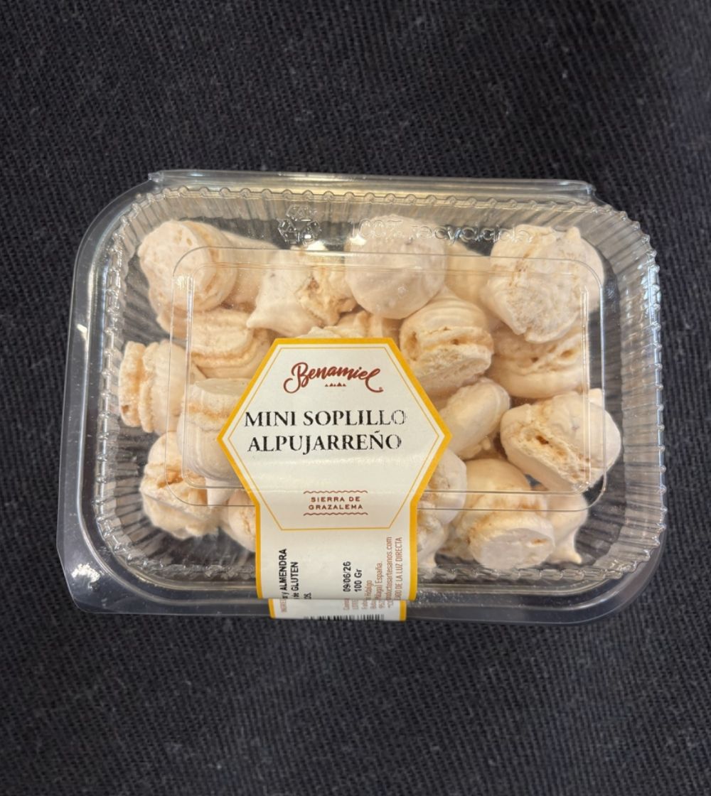 Elaborados de forma 100% artesanal, los mini soplillos destacan por su textura ligera y sabor tradicional, evocando los dulces clásicos de La Alpujarra en un formato ideal para cualquier momento.